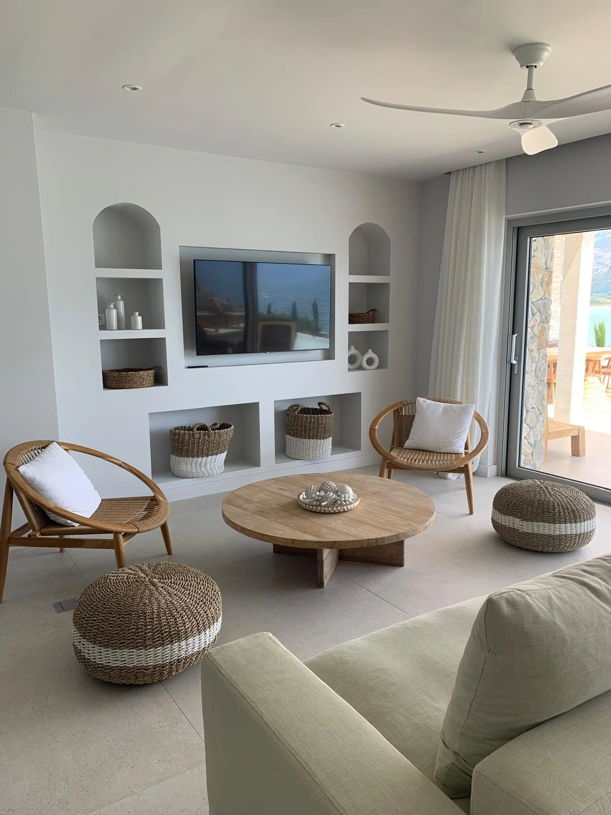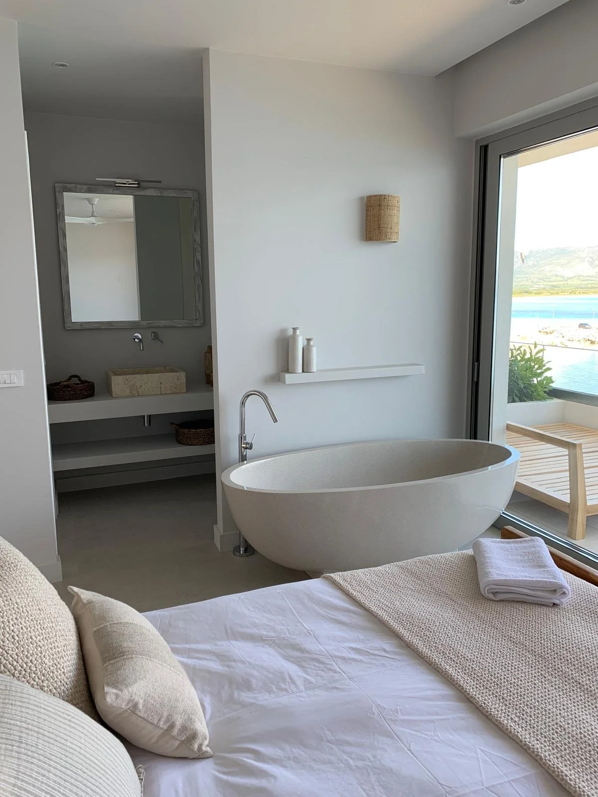 The villa has 5 spacious bedrooms (4 doubles and one twin, 3 of which enjoy spectacular balcony sea views with outdoor seating) each with en suite facilities in the form of separate shower and lavatory areas and ample cupboard and hanging space. In addition, the master bedroom has a bath and a large walk-in wardrobe area.